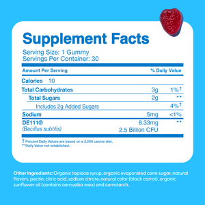 Our USDA Organic Probiotic Kids Gummies are carefully and completely formulated with USDA organic 2.5 Billion CFU of DE111 probiotic – the best and safest (30+ studies confirm the safety and efficacy of Bacillus subtilis DE111).