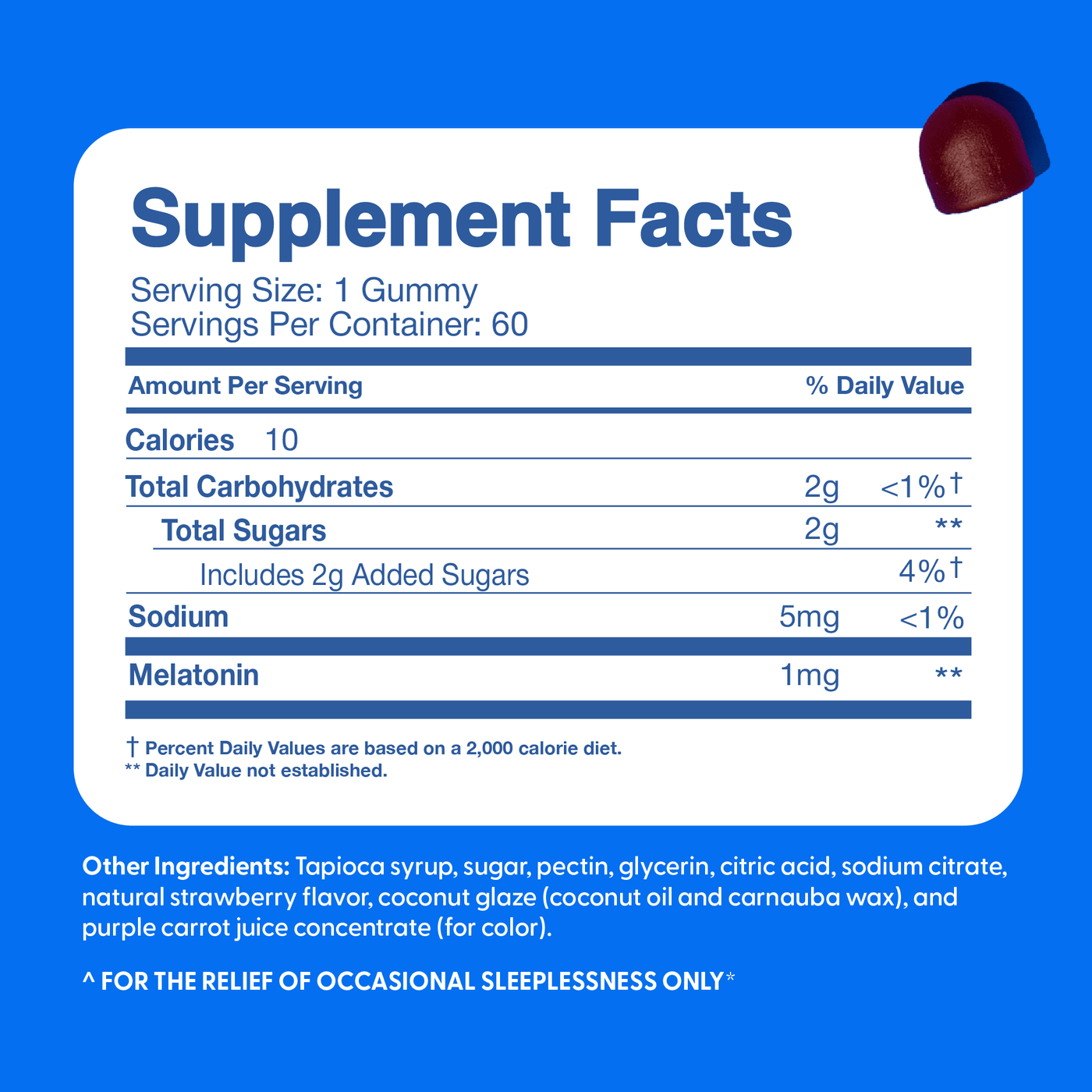 Like any supplement for kids, safety is crucial. That’s why we created an effective 1mg of melatonin per serving to make sure your kids are getting just the right amount of our delicious chewable gummies to remedy your child's occasional sleeplessness.